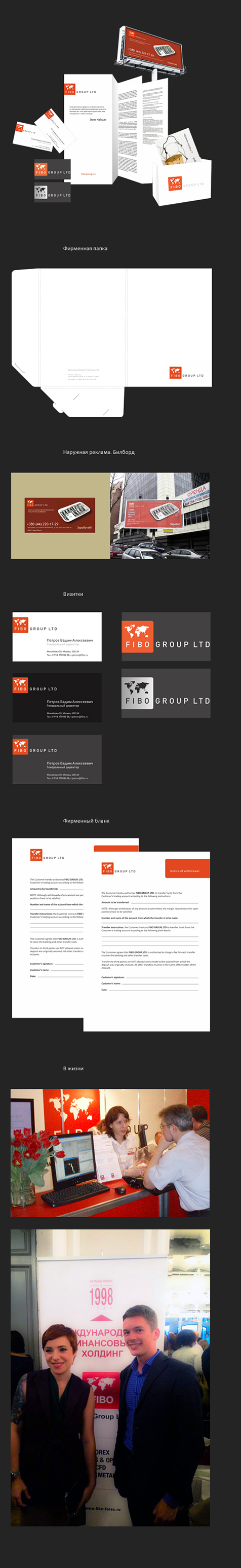 МФХ FIBO Group — это группа компаний, предоставляющих технологии интернет-трейдинга на финансовых рынках и в управлении активами. Задача: подготовить макеты визиток, буклета, фирменных бланков, пакетов, папок для выставки. Дизайнер Татьяна Avaloness